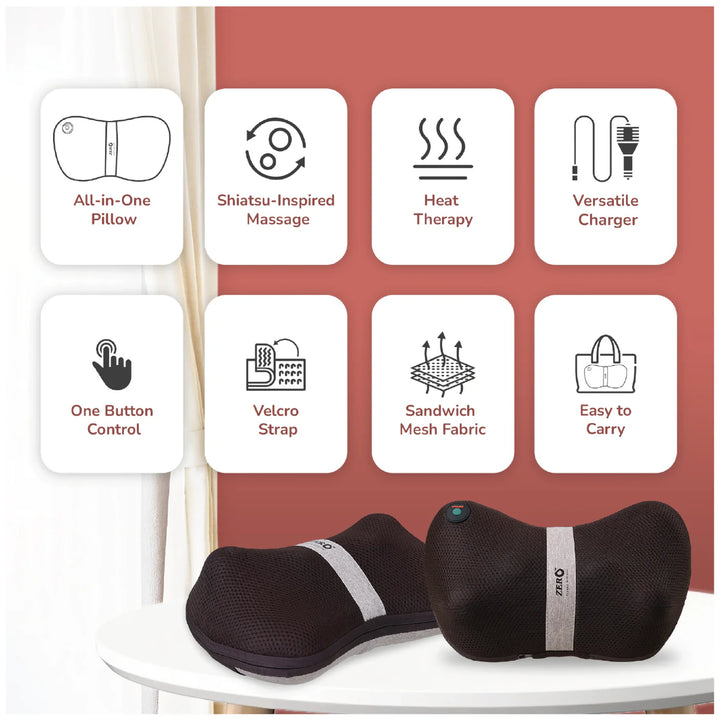 Experience soothing comfort with the ZERO Mellow Shiatsu Massage Pillow, designed to relieve tension in your neck, back, arms, and legs. Its compact, rechargeable, and portable design makes it perfect for home, office, or travel use — helping you relax anytime, anywhere.