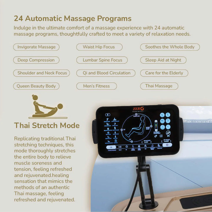 - Zero Gravity Mode: Reduces spinal pressure and improves blood flow by placing your body in a weightless position.